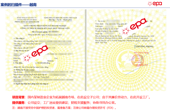 至臻聯合海外投資服務團隊有豐富的協助中國企業投資越南的經驗,已成功幫助數十家制造業、貿易型企業落地越南,我們提供的服務涵蓋ODI境外投資備案、越南當地公司設立、協助當地銀行開戶和越南財稅服務,如您有此方面的需求,歡迎聯系至臻聯合專業人士咨詢,聯系電話:400-990-8829。